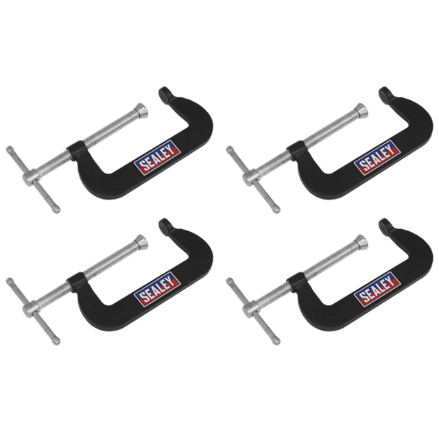 4pc set with 76mm jaw opening, and 35mm throat depth. Securely hold parts for assembly, fastening, gluing, woodworking, building, automotive, modelling and metalworking. Easy adjustment without sticking or binding. Manufactured from drop forged steel. T-Grip for easy adjustment without sticking or binding. Durable Zinc plated spindles. Tough Powder coated finish. Floating swivel jaw pads avoids damage to work.