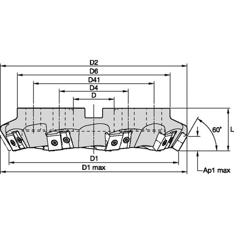 Low stock (10 units)£76.99Unit price /UnavailableMEGA60D600LN76M8 MEGA 60 Shell Mill D=6" Z=7