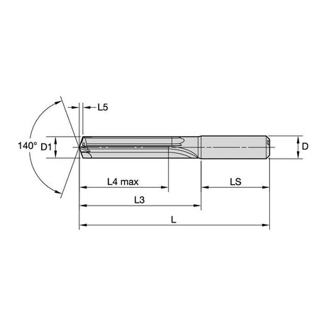 B255A10400HPR Solid Carbide Drill HPR 10, 4MM/.4094/5XD
