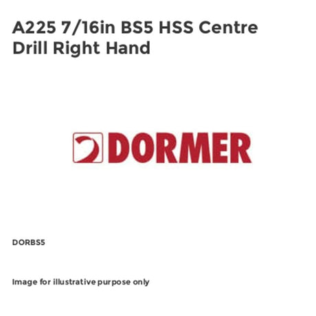 Low stock (10 units)£13.63Unit price /UnavailableA225 7/16in BS5 HSS Centre Drill Right Hand DORBS5