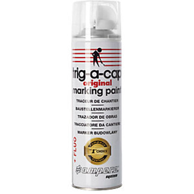 Construction site marking spray, content 500 ml, solvent-based, pack of 12 cans, white. Supplied = assembled. Colour = white. Contents = 0.5 l. Hazard class = GHS02, GHS07. Product type = construction site marking sprays. Solvent-based construction site marking spray. Markings visible for long periods due to special paint concentrate. Clean spray paint with regular spray jet. Hardwearing, weather resistant markings. Fluorescent markings for higher visibility. No CFCs, lead or cadmium. Short drying time. Construction site marking spray trig-a-cap original. Professional and high visibility markings in no time: Surveying points, topographic markings, asphalting work, service roads, pipe routes and conduits, accident scenes, markings in building construction and civil engineering, road construction and much more. New, improved protective cap - prevents accidental escape of paint. Can be used by hand or with a marking stick. Fine a precise lines on every surface , e.g. on concrete, asphalt, sand, grass, gravel, wood or earth. Pack of 1 box containing 12 cans