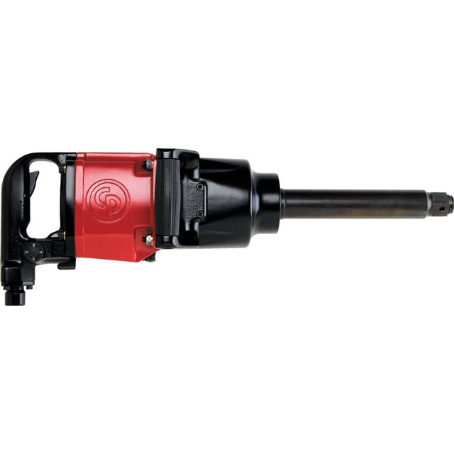A powerful 1" impact wrench with a 7" extended anvil and a D-Handle inside trigger. Convenient reverse valve for ease of use and a pinless rocking dog clutch. A 4-position power settings throttle for ease of use.
