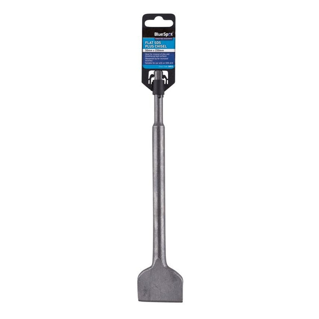 The BlueSpot 50mm x 250mm Flat SDS Chisel is manufactured from carbon steel for high durability on demanding building sites and DIY applications. The Flat Chisel is ideal for the removal of wall and floor tiles and breaking up stone and concrete. The strengthened shaft and sharpened tip increase accuracy and longevity of the tool. The chisel is for use with an SDS drill.