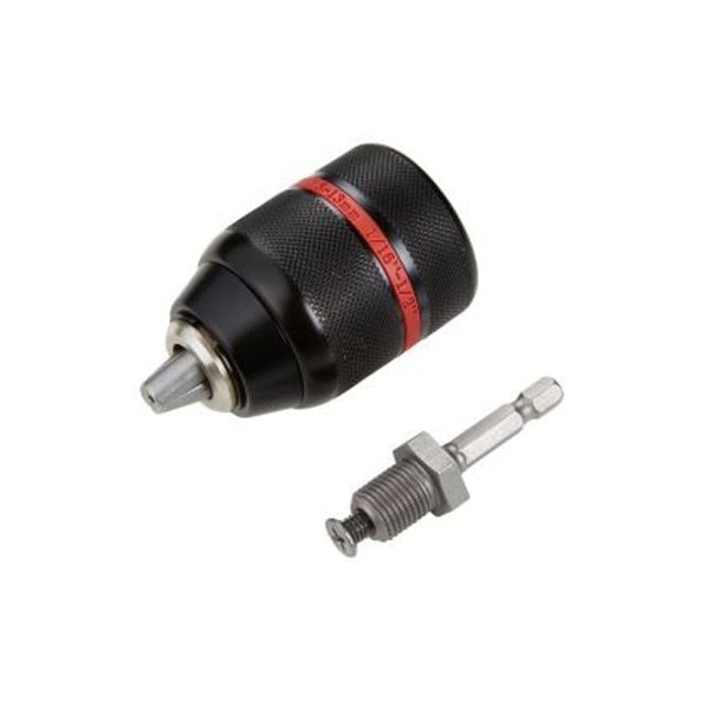 The Blue Spot Tools 1/2" Locking Drill Chuck With 1/4" Hex Adaptor (2-13mm) is manufactured from carbon steel for increased durability. Ideal for use with an electric drill. Suitable for drill bits between 2-13mm in diameter. With 1/4'' hex shank so you can fit directly into an impact driver.