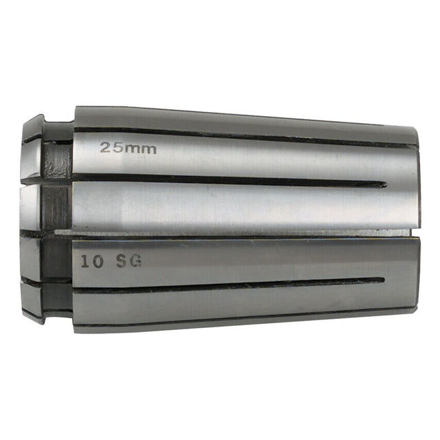 The type 10SG supergrip toolholding collet is used for heavy milling where high concentricity is required. The collet is based on a single angle construction and has a 0.4mm range of collapse.