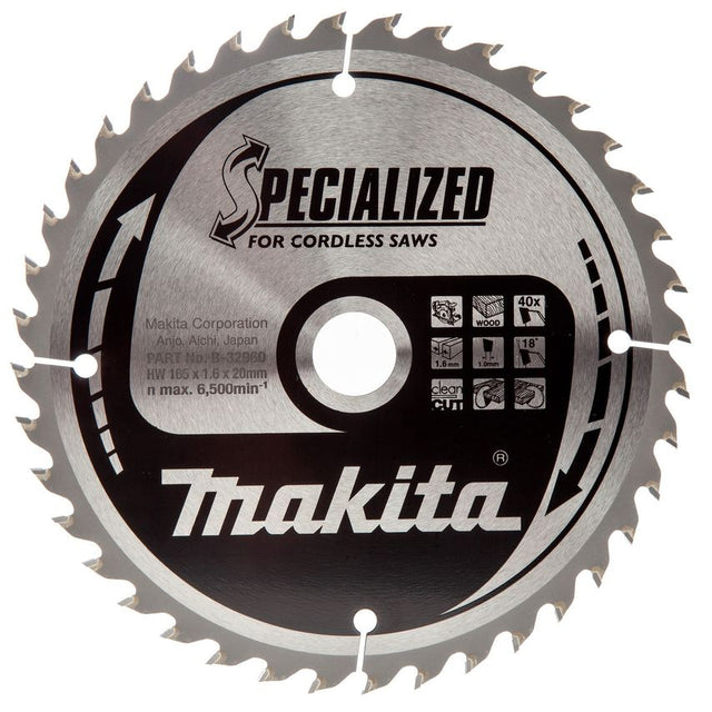 Makita B-32960 Specialized Circular Saw Blade for Cordless Saws 165mm x 20mm x 40T