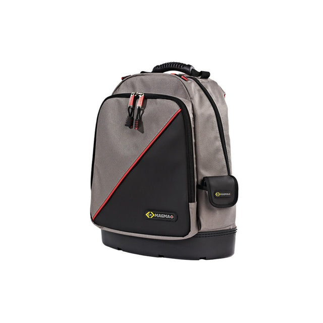This rucksack features a 100% waterproof and crack proof polymer base, a lockable zip system, a contoured shape base and extra padding at the back and reinforced shoulder straps. It contains 39 pockets and holders including space in the base for larger tools. The padded front pocket with internal zipped document pocket is ideal for laptops, tablets and any test measure equipment.