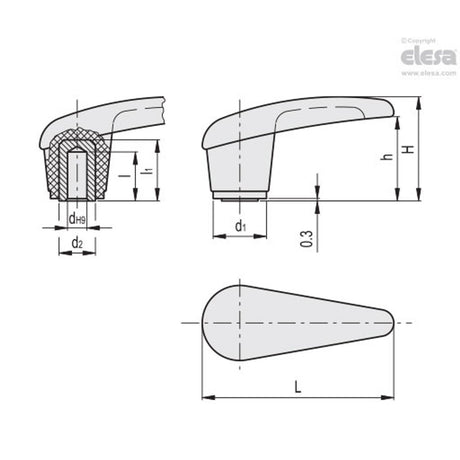 Low stock (10 units)£8.79Unit price /UnavailableERW Adjustable handles Flat lever technopolymer Stainless steel threaded stud ERW.63-SST-p-M8x35-C6