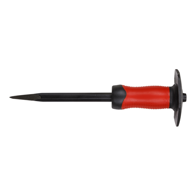 High quality drop-forged steel point chisel with octagonal shaft design. Black powder coated with polished tip for great resistance against corrosion. Fitted with comfort grip for greater comfort and control as well as protection against striking tools. Manufactured in accordance with BS 3066.