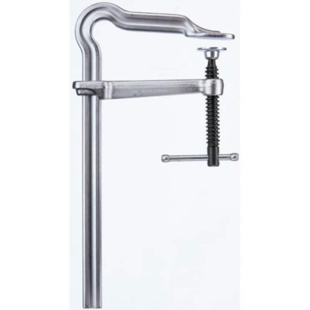 Clamping force up to 5,000 N  Fixed jaw with patented OMEGA bow for less clamping force loss  Fixed jaw and sliding arm are constructed of tempered steel for resilient clamping  High-quality 2-component plastic handle  Pressure plates can be replaced with no need for tools Innovative OMEGA bend, The patented OMEGA bend gives you added safety. It means you lose even less clamping pressure, even when vibrations are present. Maximum flexibility, The clamp forged from a single piece with moulded pressure plate is hardened, tempered and galvanised, making it highly durable and torsion-resistant. The clamps clamp resiliently and elastically. Close flat clamping, The OMEGA bend allows you to place the clamp absolutely flat to the surface of the workpiece. This allows clamping right into the corners. Pressure plate, For enhanced serviceability the pressure plate can be changed with no need for tools. It can be replaced very easily and quickly.