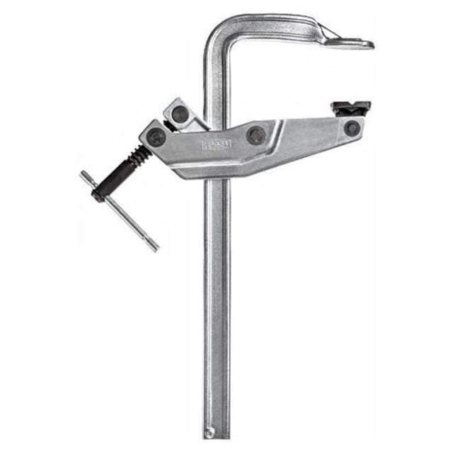 Clamping and spreading force up to 7,500 N  Externally-positioned spindle, protected from welding spatter  Clear access to work area Maximum stability, The clamp forged from a single piece with moulded pressure plate is hardened, tempered and galvanised, making it highly durable and torsion-resistant. The optimised profile now allows greater extension with the same stability. External handle, The handle is located behind the clamp's rail. This is specially conceived to allow the clamping and spreading of work-pieces which are not easily accessible. Special V-grooved pressure plate, This sturdy pressure plate is made from high-grade cast iron, and can be tilted by up to 30. The prism is ideal for clamping and spreading round or angular work-pieces. Removable end stop, The end stop can be removed  to allow the sliding arm to be quickly turned around for spreading.