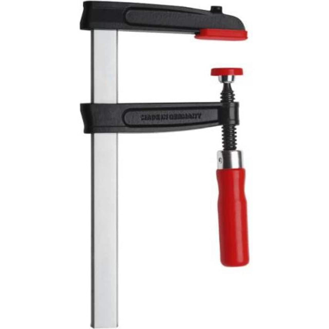 Clamping force up to 5,500 N Ergonomically shaped wood handle With protective caps on the clamping surfaces Stable solid flat rail with serration