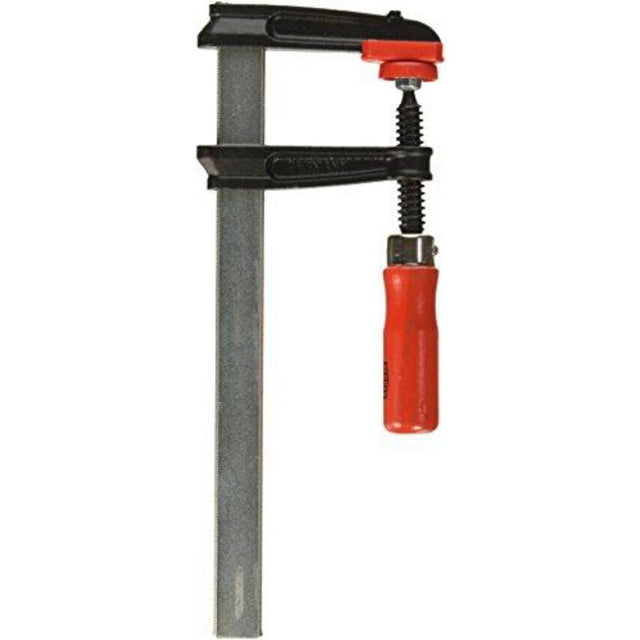 Clamping force up to 6,000 N Ergonomically shaped wood handle Pressure plates can be replaced by hand no tools required (from 80 mm throat depth) With protective caps on the clamping surfaces Stable profiled rail with serration BESSEY anti-slip system (from 80 mm throat depth) Integrated BESSEY anti-slip system, Maximum safety is available with the integrated BESSEY anti-slip system, when clamping with a throat depth of 80 mm or more. A set screw that is molded into the sliding arm interlocks with the serration on the rail. This effectively prevents the clamp from dislodging or slipping away. Reinforced malleable iron clamps, Both the upper and lower sections are produced from high-quality malleable iron and reinforced by shafts. The powder coating protects against corrosion and the characteristic shaft profile works as a reliable reinforcement against torsion forces. High-quality profiled rail, The BESSEY profiled rail from our own drawing plant has been especially optimised for clamps. The serration on six faces additionally prevents the clamp from slipping. Pressure plate, For enhanced serviceability the pressure plate can be changed with no need for tools. It can be replaced very easily and quickly.