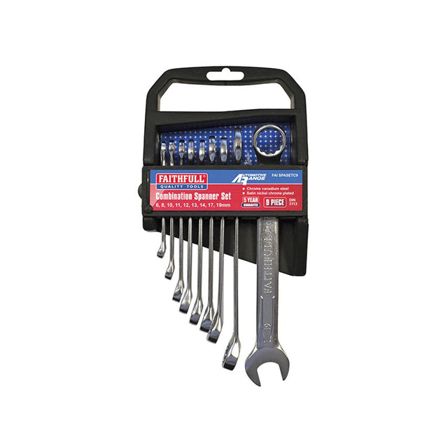 Professional high-quality combination spanners, forged from chrome vanadium steel, hardened, tempered and satin chrome plated for corrosion protection. Manufactured to DIN 3113 . Broached jaws and rings to ensure a consistent tolerance and a guaranteed accurate fit. Both the jaw and ring end are set at a 15 offset for ease of use in awkward positions.