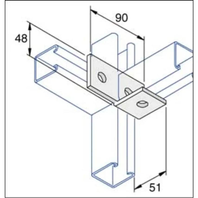 Unistrut BRACKET 90DEG 3 HOLE 90X51X48MM STEEL HOT DIPPED GALVANISED Ninety Degree Angle Fittings P1037