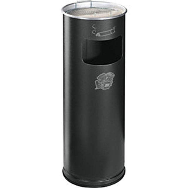 Combination ashtray, capacity 17 l, Hx 660 x 230 mm, sheet steel, granite. Supplied = assembled. Waste collector material = sheet steel. Waste collector colour = granite. Waste collector capacity = 17 l. Waste collector diameter = 230 mm. Ashtray material = aluminium. Ashtray colour = aluminium silver. Place of use = indoor and outdoor use. Type of mounting = free standing. Finish = powder coated. Feature = sand-fillable, round. Hood = without. Weight = 3.6 kg. Design of access opening = 1. Product type = pedestal combination ashtrays. Round. Aluminium ashtray insert for sand filling. Zinc plated sieve. Side deposit openings for rubbish. Powder coated, electrolytically zinc plated sheet steel. Good corrosion protection due to UV-resistant, polyester based powder coating. Zinc plated inner bin with metal bar handles as an accessory.