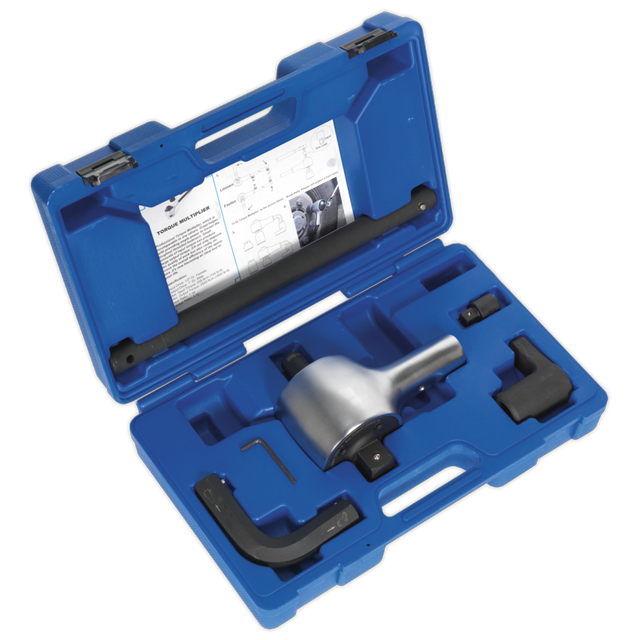Robust construction with 1/2"Sq drive female input and 1"Sq drive male output. Accurately delivered torque multiplication factor of 1:12. Compatible with a wide range of drive tools including torque and ratchet wrenches. Includes straight and 90 reaction bars, reaction base, two breakaway adaptors* and L-type hex key. Supplied in storage case.