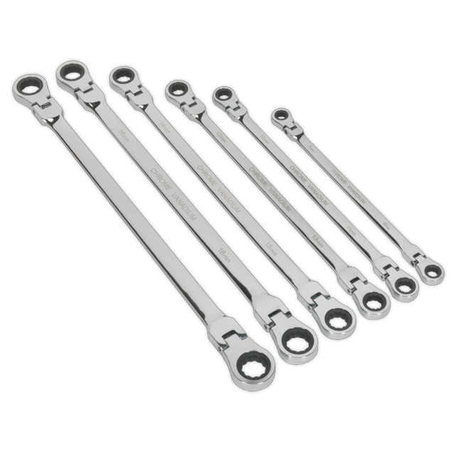 Manufactured from high quality Chrome Vanadium steel. Hardened and tempered with a fully polished mirror finish. 72-Tooth WallDrive rings give ultra-smooth ratchet action requiring only 5 rotation to pick up the next tooth. Feature extra long shafts and flexible ring heads, ideal for awkward applications. Supplied in storage tray.