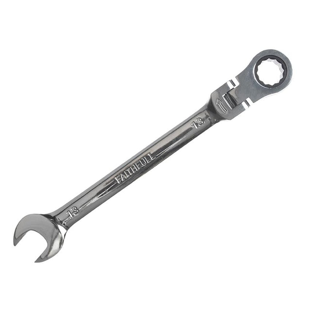 These Faithfull Chrome Vanadium spanners have flexible ratchet heads, which can turn through 180, allowing them to be used in more awkward to reach places at any angle. Each spanner has a 72 fine-tooth mechanism. A useful arrow illustration is etched in the spanner to indicate the direction of torque.180 head for access into tight places.5 Fine Ratchet Mechanism.