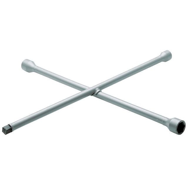Acc. to DIN 3119, ISO 6788 GEDORE vanadium steel 31CrV3 GEDORE grey powder-coated Dimensions: 750 x 750 mm Hot forged hexagon The collar, typical of GEDORE 4-way wheel wrenches, enlarges the welding area The positive-fit joint remains solid even under extreme loading Dimensions: 750 x 750 mm