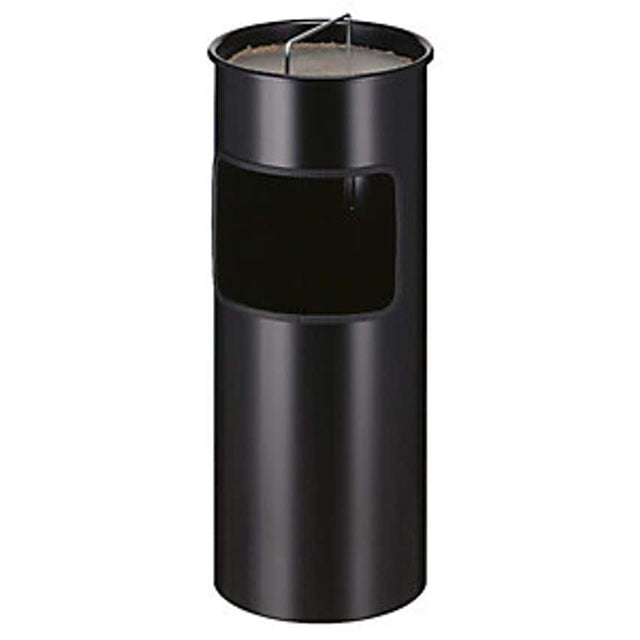Combination ashtray, capacity 30 l, Hx 613 x 243 mm, black. Supplied = assembled. Waste collector material = sheet steel. Waste collector colour = black. Waste collector capacity = 30 l. Waste collector diameter = 243 mm. Ashtray material = sheet steel. Type of mounting = none. Feature = sand-fillable. Hood = without. Fittings = inner container. Inner container material = sheet steel. Weight = 5.04 kg. Design of access opening = 1. Product type = pedestal combination ashtrays. Two access openings. Fireproof combination ashtray made of sturdy sheet steel. Removable ashtray sieve insert made of zinc plated sheet steel for easy removal of cigarette butts. Extinguishing sand included.
