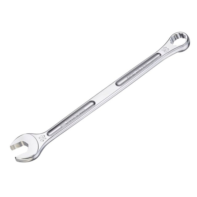 The Facom Series 440XL Combination Spanner is manufactured from Chrome Vanadium Steel with a long handle for high torque. Optimised open end / handle geometry offers increased accessibility and feature ground contact faces. The 15 offset box end allows for a high torque without damaging the nut.