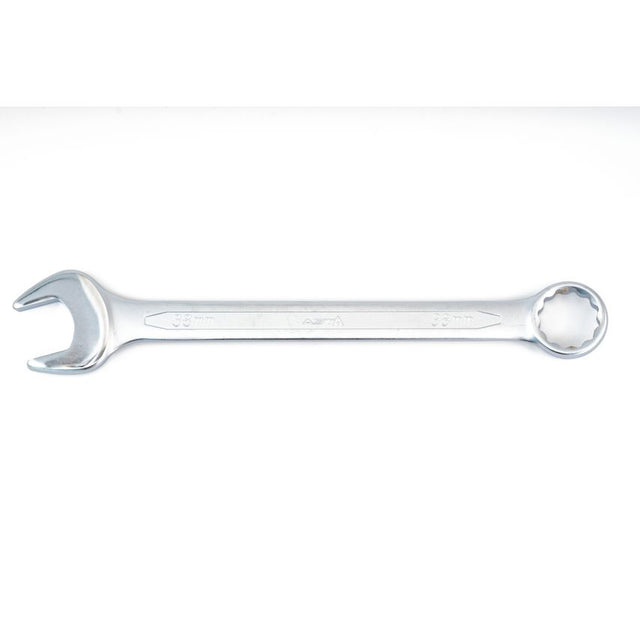 33mm combination spanner with straight open and 15 offset 12 point (12PT) ring end for easier use on flat surfaces. Made of hardened and tempered Chrome Vanadium (Cr-V) steel for maximum performance and durability. Matt finish for resistance to corrosion.