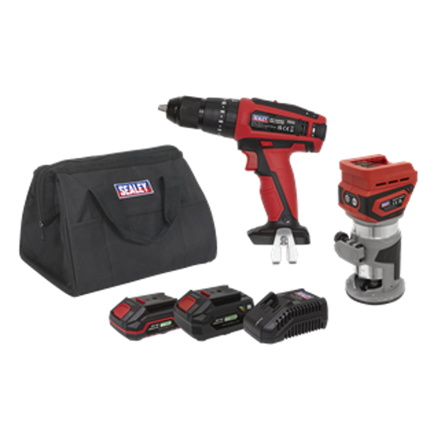 2 x 20V SV20 Series Cordless Router & Combi Drill Kit - 2 Batteries