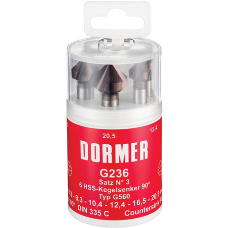 G236 Set 1 (6-PCE) HSS Straight Shank 90DEG Csk DIN 335 C