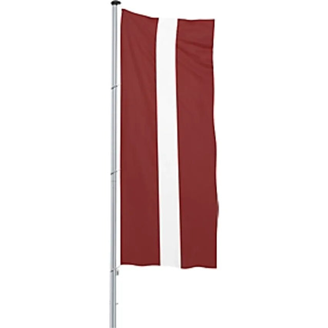 Flag for hoisting/national flag, format 1.2 x 3 m, Latvia. Supplied = assembled. Material = Supratex. Length = 1.2 m. Width = 3 m. Motif = Latvia. Product type = flags. Ideal for representative outdoor areas. Weather resistant and high tear resistance. Perfect print image.