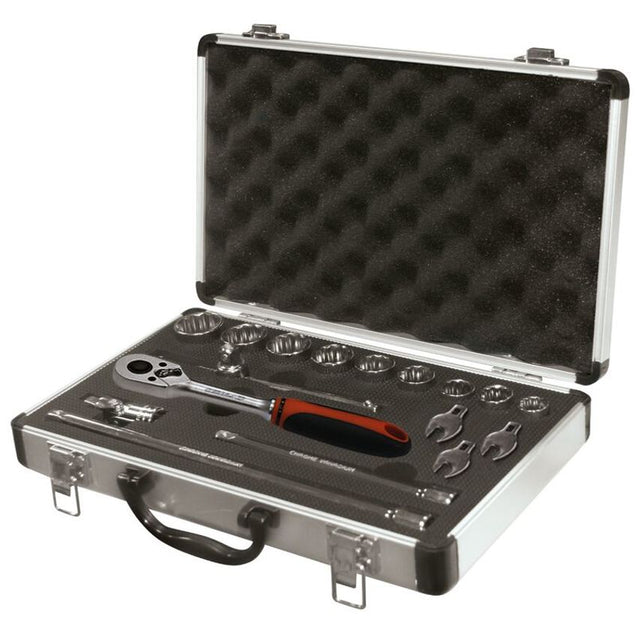 Set of 19 Pieces Socket Wrenches 3/8" 5/16" - 7/8" and Crowfoot 3/8" - 3/4" (12 Edges)