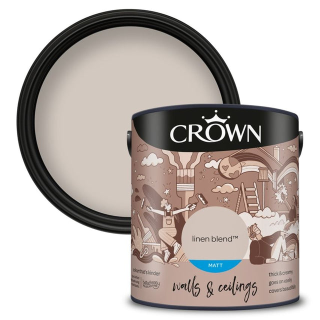 Crown Walls & Ceilings Matt 2.5L Linen Blend Durable, wipe down finish Unique Breatheasy formulation - 99% Solvent free Touch dry in 2 hours