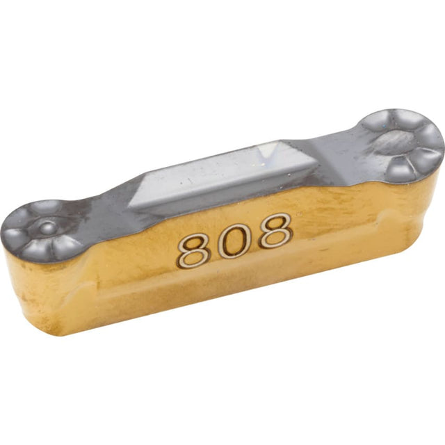 A thin PVD coated TiCN layer on a P40 substarte. High toughness. For general Applications in parting and grooving steel, alloy and stainless steel atmedium to high cutting speeds.