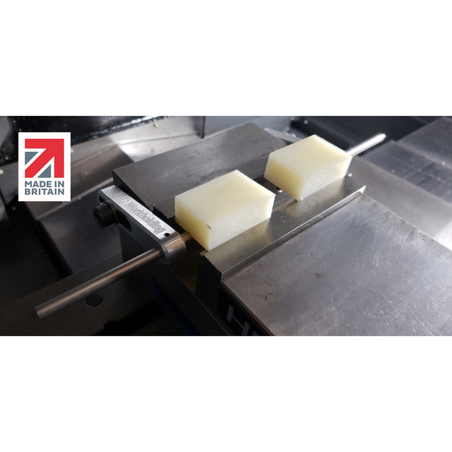 SLAC-WH1 is one of the first vice stop manufactured by a machinist with the CNC machinist in mind. Its low-profile design can stay completely below the top surface of the vice to enable it to not interfere with cutting tool paths. Whether you are making 1 part or 1000 parts, the SLAC-WH1 stop will not move once you lock it down by the grub screws located on the sides. It is an ideal datum point to locate parts. The stop has two adjustable non-marking flat point grub screws for moving the position in X axis and can easily be removed once the workpiece is clamped, this allows the component to be machined all the way round.You can also use SLAC-WH1 on the opposite side of the vice, so a duel set up is made available on the same vice, reducing set up and loading time by at least 60 percent. Simply bolt SLAC-WH1 to the side of the vice, set the location where you would like the stop rod position to be. Suitable for all vices whether it is 4, 5 or a 6 vice.SLAC-WH1 is designed and manufactured in the UK. The body is made from aerospace grade aluminium and stop rod from hardened stainless steel.Technical Details: Manufactured in the UK Comes in Red for enhanced visibility or clear. SLAC-WH1 fits all vices with a tapped hole on each side of the vice Reduce your set up times by up to 60% compared to other workstops. Kit comes with SLAC workholding lever arm, hardened stop rod, side bolt, two washers and two non marking grub screws.Instructions:1. Determine the location of where SLAC-WH1 would be positioned so that body and stop rod do not interfere with tool paths, ensure material stops at position, once determined, tighten with the supplied bolt into the vice.2. Position stop pin to desired X Axis and tighten grub screws.