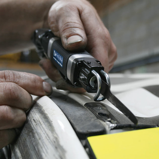 Suitable for a variety of bodyshop applications particularly where space is limited. Use as a cutting saw for panels or a file for deburring and shaping metalwork. Fitted with safety trigger device. Supplied with a starter pack of blades and files. See page XXX for replacement blades and needle files.