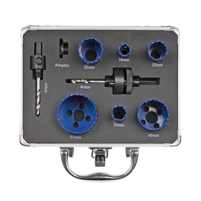 Bi-metal blades. Professional quality kit. Sturdy storage case.