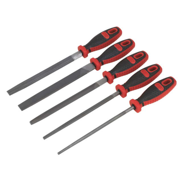 Popular set of assorted smooth cut files with comfort grip handles.