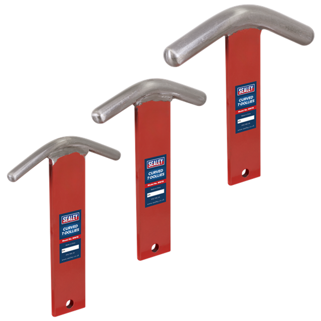 These Curved T-Dollies punch out small curves, edges, or reshapes damage with exacting accuracy. Constructed from durable cast steel for long-lasting reliability in demanding metal forming tasks. Offers diverse head dimensions ranging from 12-25mm in diameter and 152-203 in length, catering to a range of metal forming needs. Accommodates various work setups, from bench vice clamping to optional bench or floor stand use.