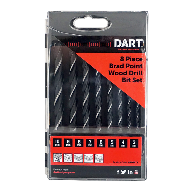 Precision engineered brad point wood drill bits. Manufactured from high grade steel for accuracy and precision. Extremely sharp point for precise, tear free holes. Suitable for hard wood, soft wood and man-made boards. This set contains 3, 4, 5, 6, 7, 8, 9, 10mm bits.
