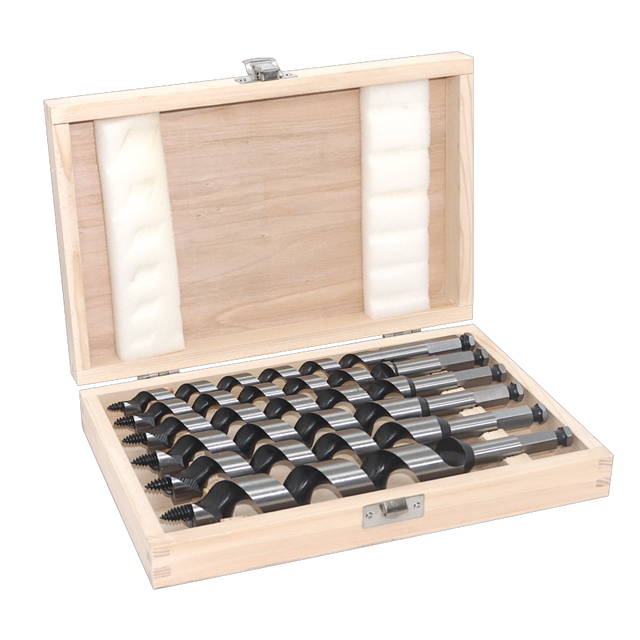 Precision ground bit for fast clean drilling in all types of wood. Threaded tip for self centring self feeding. Smooth flute geometry enables fast drilling and fast chip removal without jamming. One main spur and one pre-cutting spur for accuracy. Suitable for drilling construction timber, hard and soft wood, laminated chipboard and veneerd wood. This set contains 13, 16, 18, 20, 25 x 230mm bits.