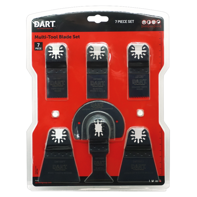 Precision engineered range of multi-tool oscillating blades designed for a variety of applications. Contents: 1 x 32mm Bi-Metal Blade (Wood & Nails) 1 x 44mm Bi-Metal Blade (Wood & Nails) 1 x 32mm Japanese Tooth (Fast Cut) 1 x Multi-Tool Blade (Wood & Plastic) 1 x 63mm Japanese Tooth (Fast Cut) 1 x 32mm Fine Tooth Blade (Wood & Plastic) 1 x 90mm HSS Segment Blade (Wood & Nails)