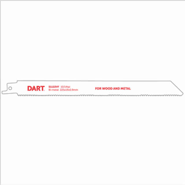 High quaility Bi-metal Reciprocating Saw blade. Variable tooth spacing for cuts in different materials, flexible and shatter-proof. For cutting metals, woods with nails and synthetics. Equivalent to Bosch S1122VF. 10 - 14 TPI, 130mm working length.