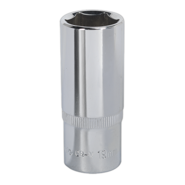 Cold-forged Chrome Vanadium steel socket. Hardened and tempered for added strength. Chrome plated with a fully polished mirror finish. WallDrive socket configuration. Knurled ring for extra grip with oily fingers.