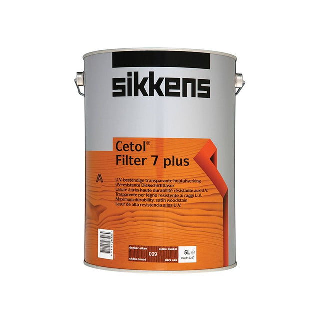 A highly durable, solvent-borne, highly translucent satin woodstain from Sikkens. Cetol Filter 7 is a highly translucent satin exterior woodstain for windows and doors. It can be used as a maintenance coat for existing woodstain systems or over a base stain of Cetol HLS on new or bare timbers. Its advanced UV light absorbers provide superior protection from the damaging effects of sunlight on timber. For use on exterior softwood and hardwood joinery, windows and doors, but not suitable for decking or other areas subject to high levels of abrasion.