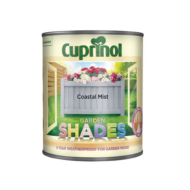 Cuprinol Garden Shades has been specially developed to colour and protect sheds, fences and other garden wood, with 6 years weather protection. Its special pigments ensure a rich colour and allow the natural texture of the woodgrain to shine through. It can also be applied on terracotta, brick and stone, to bring beautiful colours to the rest of the garden. It is water-based and harmless to plants and pets. Cuprinol Garden Shades has the following specifications Colour Coastal Mist. Size 1 litre.