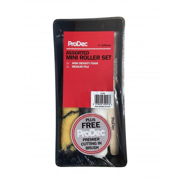 Mini roller kit with tray, foam refill, long pile refill and frame. Ideal for emulsion, gloss & satin paints.