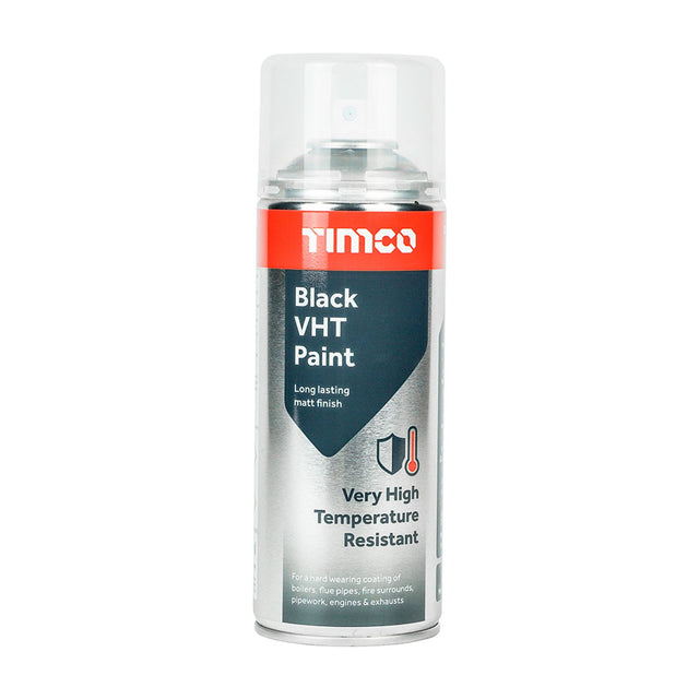 TIMCO Black VHT Paint is a hard-wearing heat and flame resistant coating for metal surfaces. During the curing process a durable silicone matrix is formed to give protection against extreme temperatures. Ideal for stoves, heaters, fireplaces and surrounds, boiler flues, machinery, exhausts, radiators, incinerators, furnaces and more.