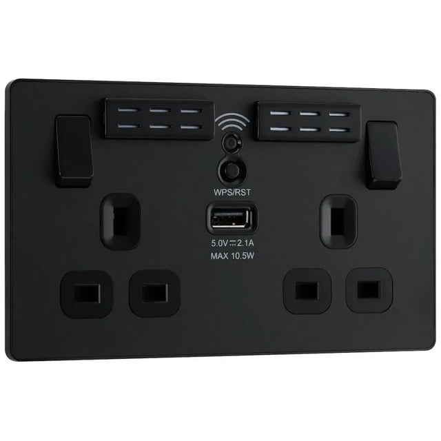 Luceco EVOLVE MATT BLACK WIFI EXTENDER 2G 13A SOCKET+1xUSB2.1A Evolve Range PCDMB22UWRB-01