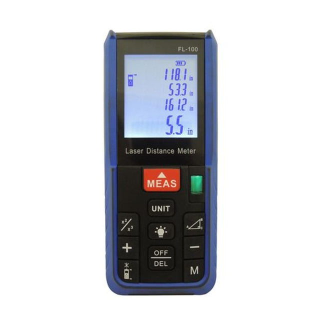 Accurate distance measuring from 5cm to 100m (0.16ft to 328ft) .Class II laser.Area/volume calculation.Pythagoras function for remote measuring of height or length.Addition/subtraction calculation.Min/max distance tracking.Splash-proof to IP-54 rating.Battery life lasts for 6000 measurements.Supplied with 3 x AAA batteries.
