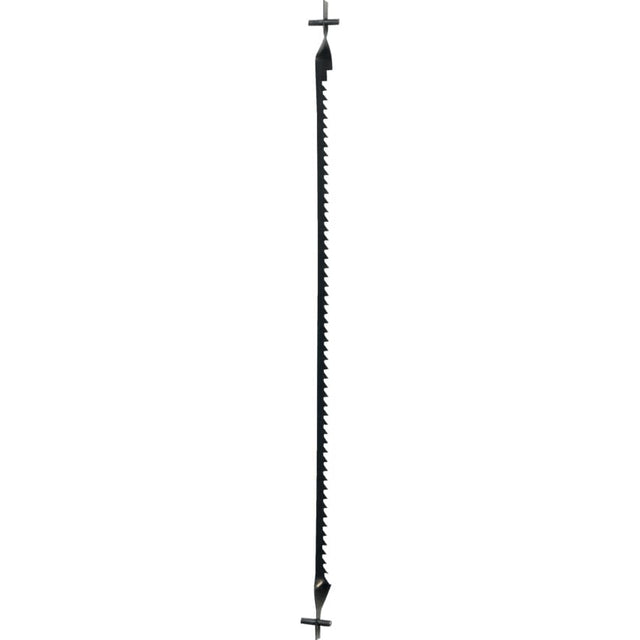 Saw blade for longer cut offs, which are normally limited by the throat depth of the tool. In terms of technical specifications, this blade is identical to the MS51 General Purpose blade, however, its top and bottom parts are 90 degrees twisted. This twist allows a lateral material feed either from left or right, resulting in technically infinite cuts.